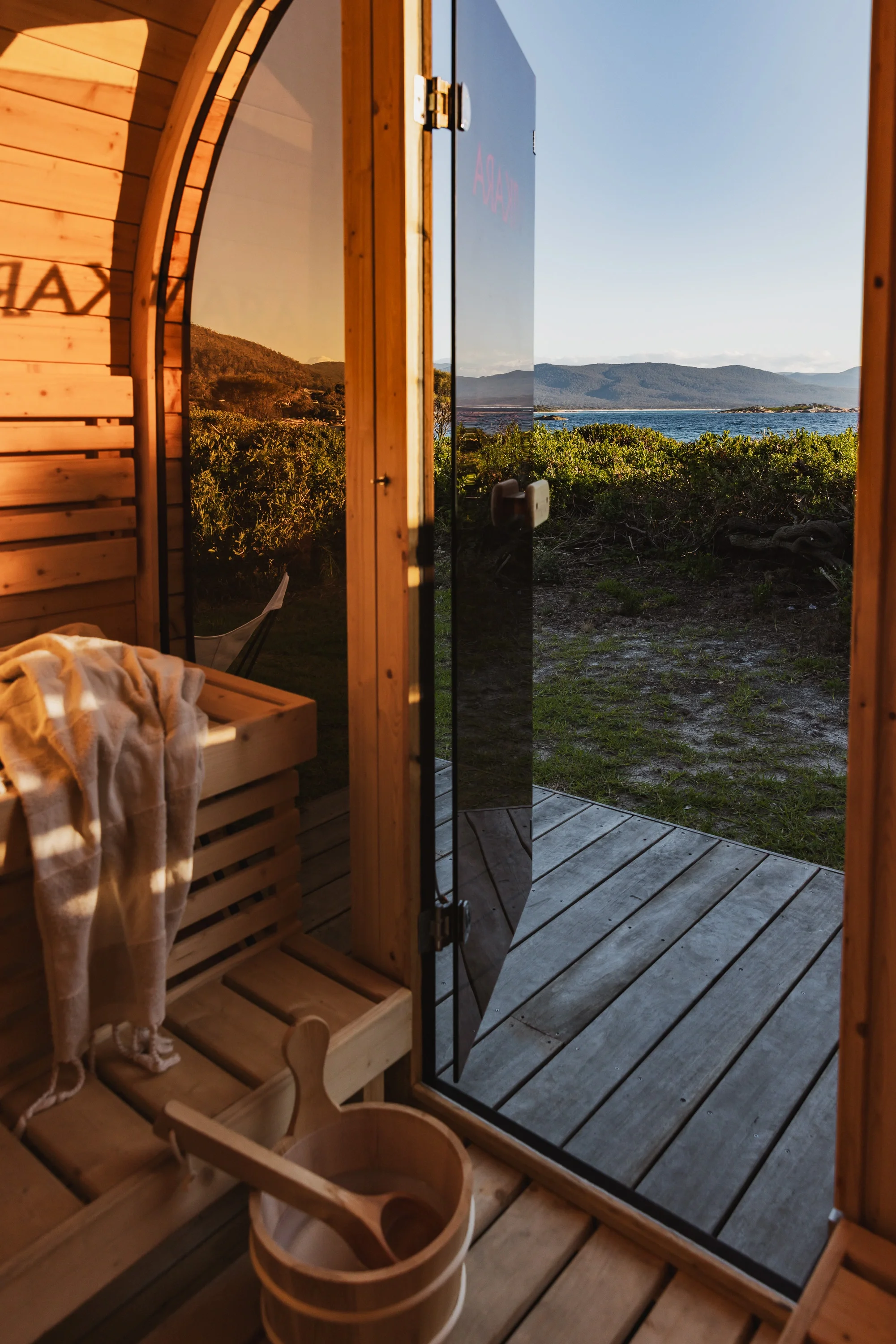 And then there’s our guest favourite — the private sauna, your personal haven of warmth and tranquility. After a refreshing swim in the ocean or a cool coastal walk, step into the sauna and feel your body unwind. The gentle heat melts away tension, leaving you calm, rejuvenated, and ready for another peaceful evening by the sea.